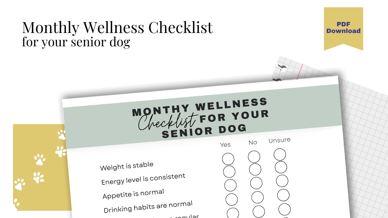 Track your senior dog’s monthly care and spot changes early with this checklist.